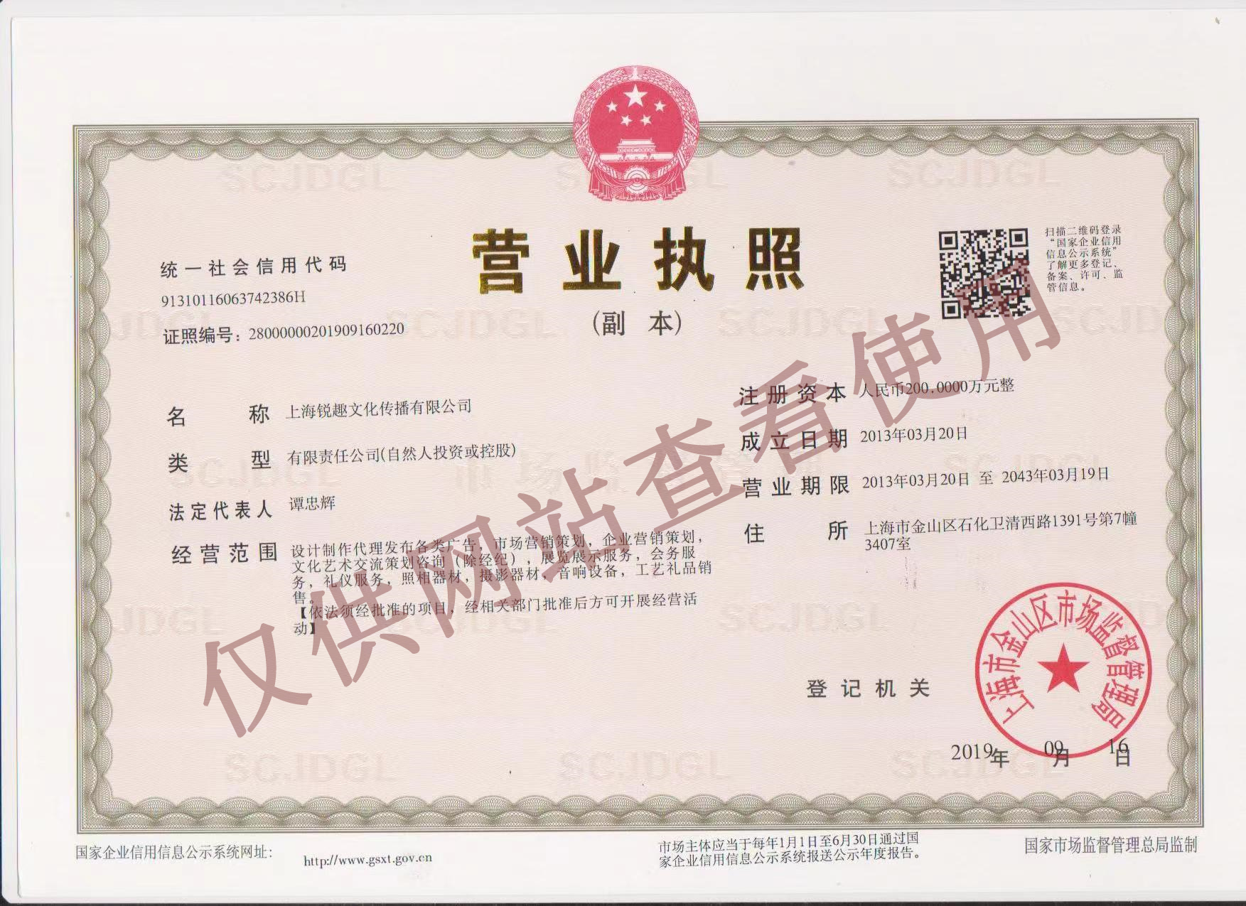 上海锐趣文化传播有限公司是一家专业提供各类展览、庆典、会议、高校、展览搭建、会展设备提供、服务支持、文艺演出制作及文化活动策划编排等。由品牌运营专家、营销活动策划人及设计精英组合而成,凭借对市场趋势的敏锐洞察和对消费者、企业形态的深刻理解,为企业提供多方位、多领域的文化传播服务...